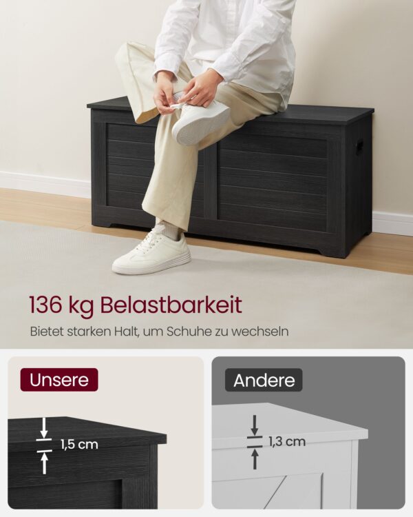 Šis batų suolas su daiktadėže yra puikus pasirinkimas tiems, kurie vertina tiek estetiką, tiek funkcionalumą. Jo tvirta konstrukcija užtikrina ilgaamžiškumą, o elegantiškas dizainas – stilingą išvaizdą. Pasirinkite šį baldą ir mėgaukitės tvarka bei patogumu savo namuose.