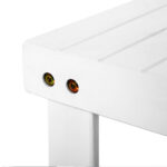 - Įkiškite varžtus į skylutes ir įsukite ilgus varžtus iš lentynų kojelių išorės į vidų. Surinkdami palikite kojas su skylutėmis į išorę.