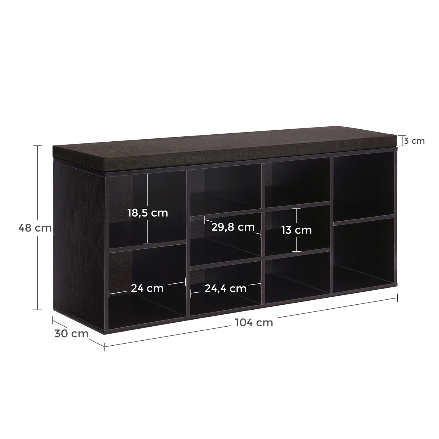 Batų suoliukas su lentynomis 30x104x48cm., juodos spalvos