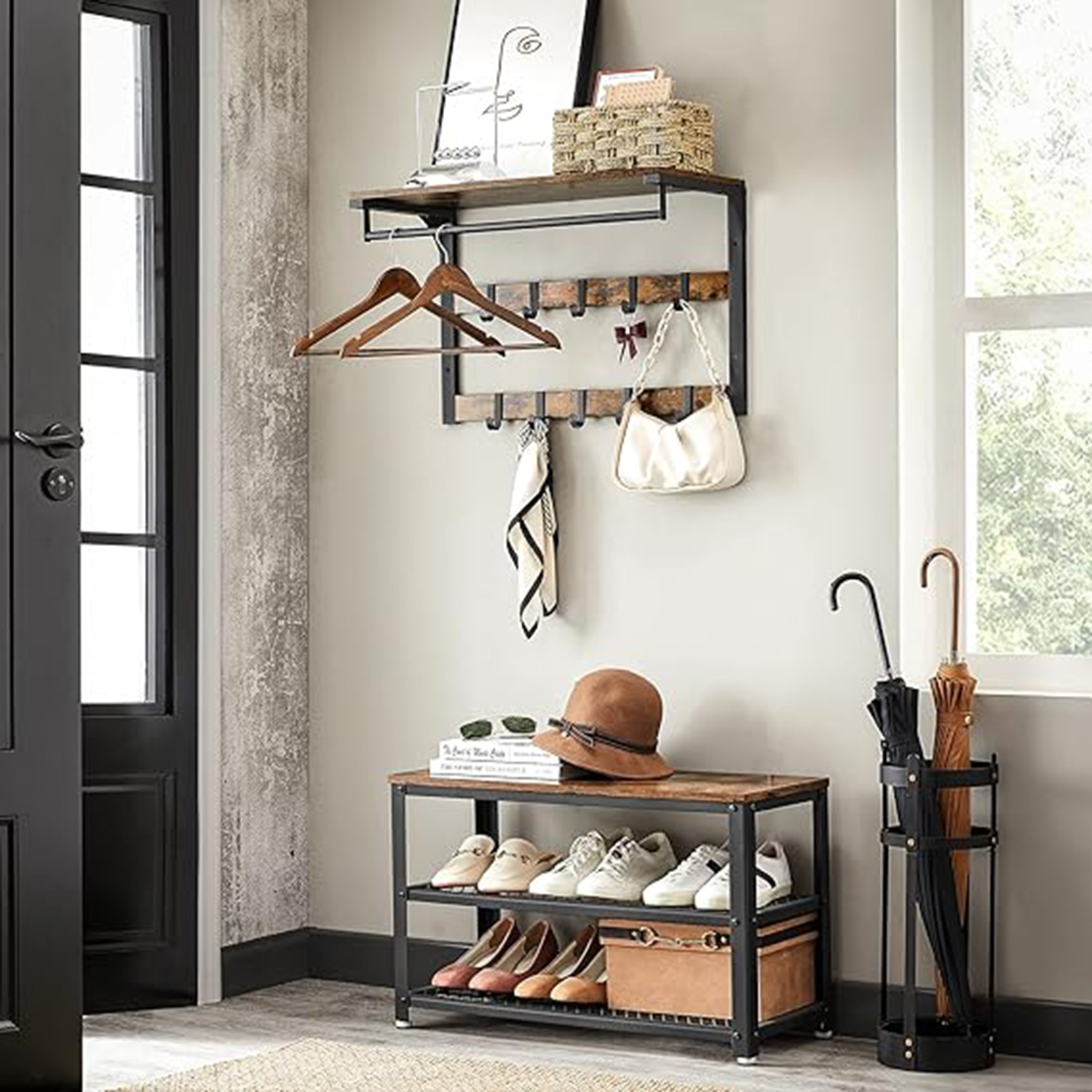 Batų suoliukas su sienine kabykla – Rudos/Juodos spalvos