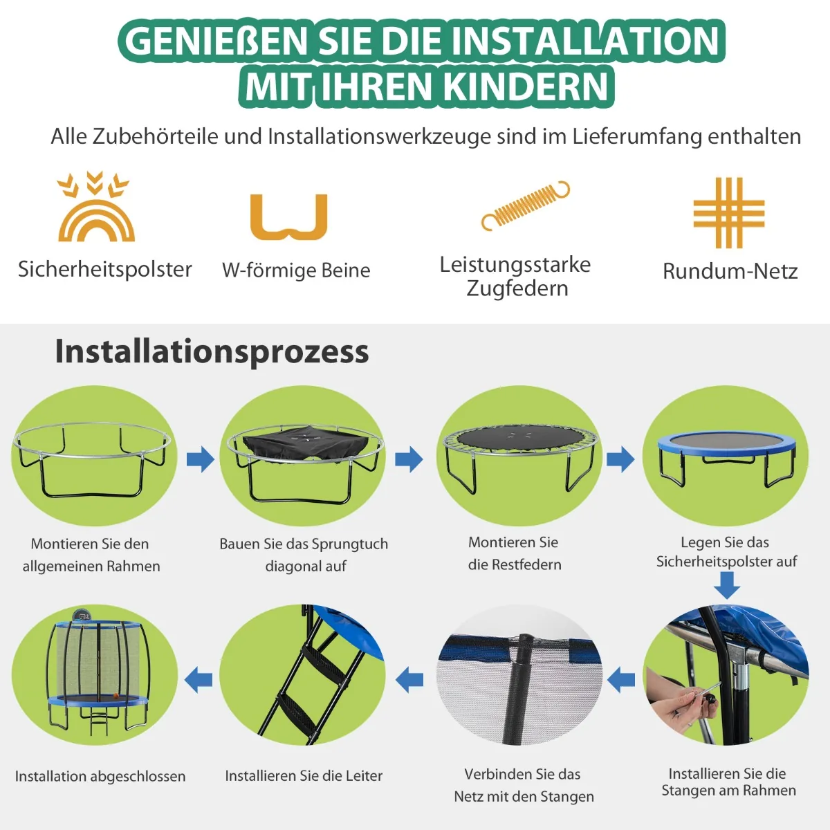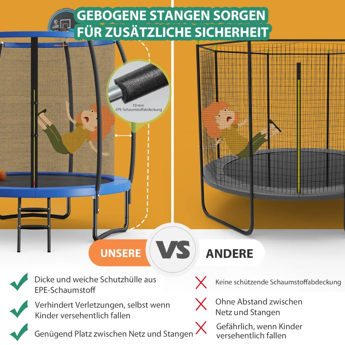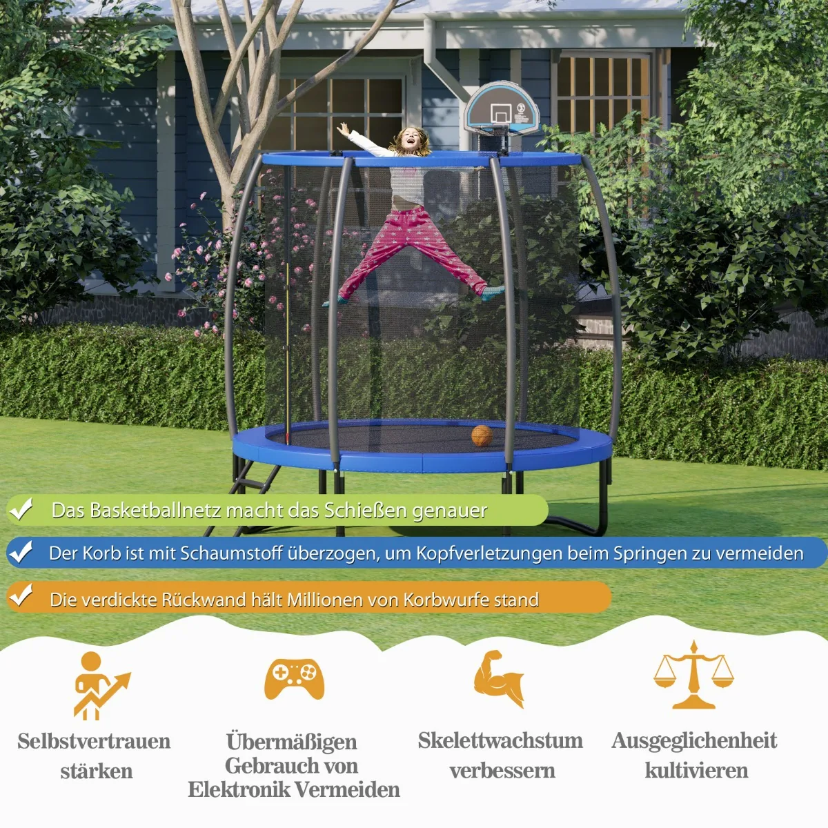 Batutas 244x244x245 cm, juodos ir mėlynos spalvų derinio, skirtas aktyviam laiko praleidimui lauke. Šis lauko batutas užtikrina saugų ir komfortabilų šokinėjimą vaikams, derindamas funkcionalumą ir patvarumą. Tinka tiek fiziniam aktyvumui, tiek smagiam pramogavimui.