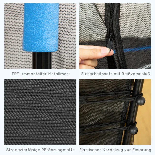 Saugių pramogų! Mūsų vaikiškas batutas iš HOMCOM atitinka aukščiausius saugos reikalavimus ir yra tikras šokinėjimo malonumas! Aukštos kokybės apsauginis tinklas ir paminkštinti stulpai, taip pat batuto krašto dangtis sumažina sužalojimo riziką. Apsauginio tinklelio praėjimas yra su patogiu užtrauktuku. Jūsų vaikai gali smagiai lavinti savo pusiausvyros ir koordinacijos jausmą ant vaikiško batuto.