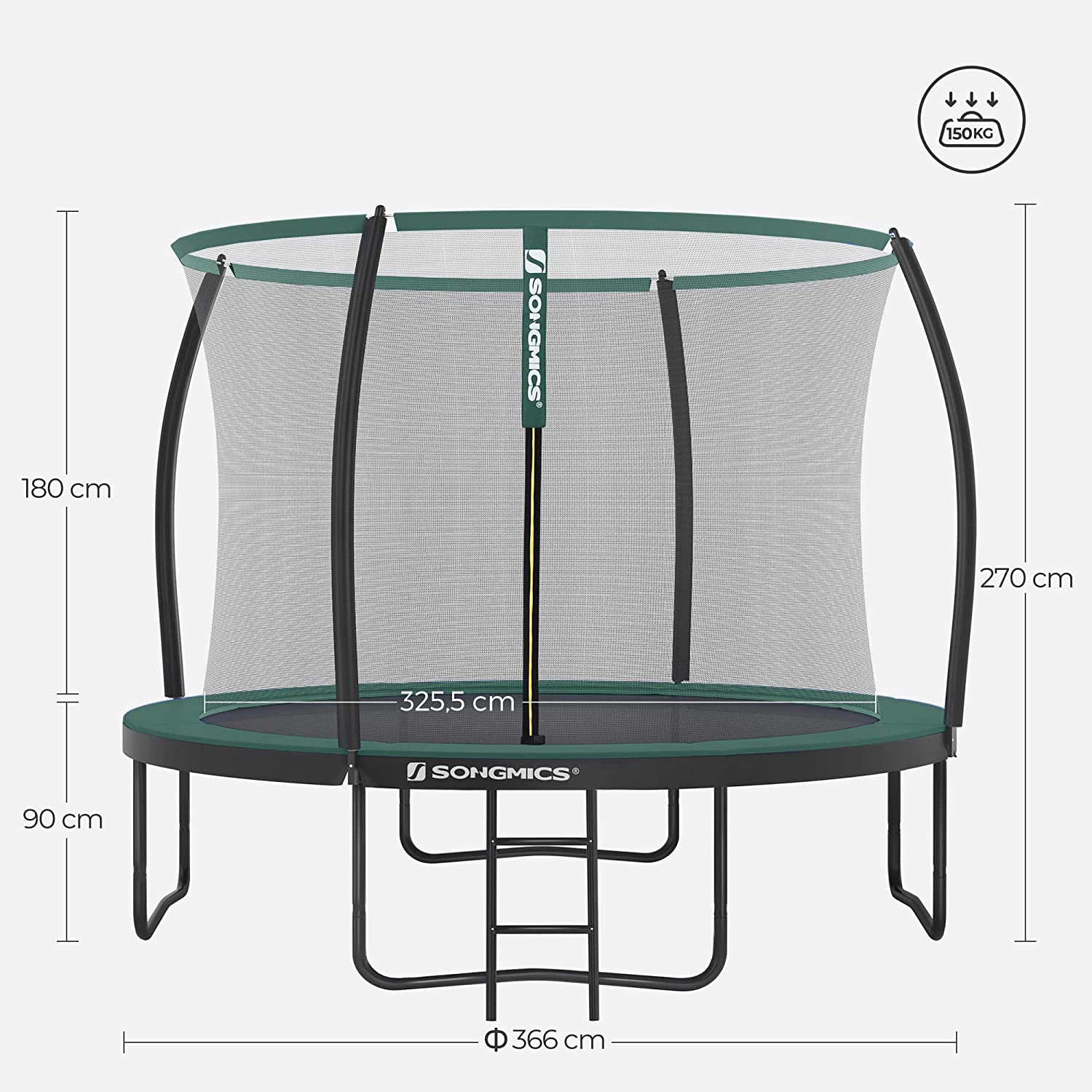 - Tarpas tarp žemės ir batuto paviršiaus: 90 cm