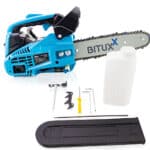 Žinomos kompanijos Bituxx benzininis pjūklas, kurio talpa 25 cm3 leidžia nenuilstamai dirbti ilgą laiką ir užtikrina nesudėtingą pjovimą. Šis patogus pjūklas nenuvils jūsų net sudėtingose situacijose. Jis sujungia paprastą valdymą ir optimalų patogumą vartotojui. Karabino kablio dėka šis pjūklas gali būti naudojamas ir dirbant aukštyje. Grandinės stabdys atatrankos atveju sustabdo pjūklą per sekundės dalį, užtikrindamas saugų darbą. Pjūklas turi didelį, oru aušinamą, 2 taktų 1 AG variklį. ; ; TECHNINĖS SPECIFIKACIJOS: Variklis: 1 cilindras, 2 taktų, Aušinimas: oru aušinamas, Talpa: 25,4 cm3, Galia: 0,75kW/1AG, Kuras: 40:1 (benzino ir alyvos mišinys), Bako talpa: 230 ml, Variklio alyvos bakas : 160 ml, Grandinė: 12 colių, 40 grandžių grandinė, Garso slėgio lygis (Lpa): 95,4 dB (A), Garso galios lygis (Lwa): 113 dB(A), Savitas svoris: 3,85 kg. ; Įtraukta: 1x 1HP 25cc benzininis grandininis pjūklas, 1x 12″ kardas su grandine (40 jungčių), 1x grandinės apsauga, 1x maišymo indas, 1x įrankių rinkinys ™dzi. ; ;
