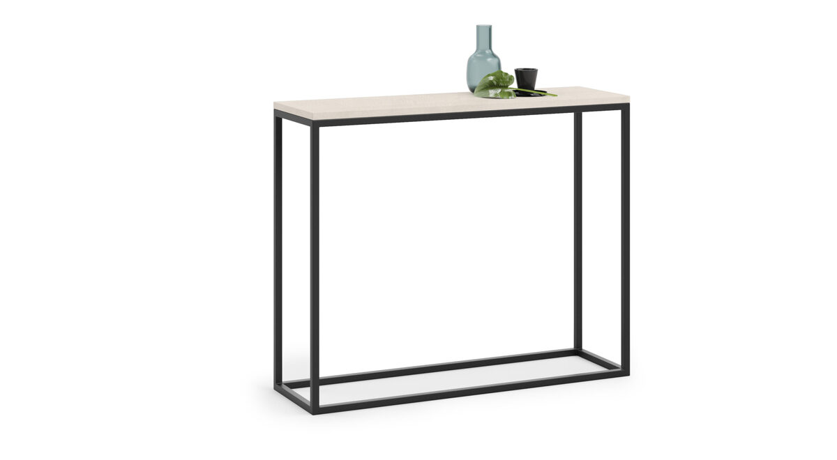 Ši betono dizaino stalas-konsolė yra puikus pasirinkimas tiems, kurie vertina modernų ir minimalistinį stilių. Tvirtas plieninis rėmas užtikrina konstrukcijos stabilumą ir ilgaamžiškumą, o nėra matomų varžtų suteikia estetišką išvaizdą.
