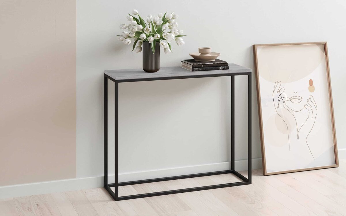 Betono dizaino stalas-konsolė yra puikus pasirinkimas tiems, kurie vertina modernų ir minimalistinį interjerą. Šis tamsiai pilkos spalvos stalas-konsolė ne tik atrodo stilingai, bet ir yra itin funkcionalus.