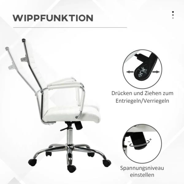 Su šia Vinsetto biuro kėde sėdėti valandų valandas tampa malonu ir patogu. Aukštas atlošas ir minkštas paminkštinimas užtikrina aukštą sėdėjimo komforto lygį. Ergonomiškos linijos suformuotos taip, kad puikiai priglustų prie nugaros. Dėl keturių universalių ratų jį galima lengvai perkelti pirmyn ir atgal. Ši biuro kėdė iš Vinsetto stebina ne tik šiuolaikišku dizainu, bet ir aukštu sėdėjimo komforto lygiu.