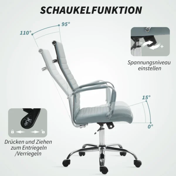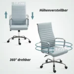 Ši Vinsetto ergonomiška biuro kėdė leidžia ilgai sėdėti patogiai ir maloniai. Aukštas atlošas ir minkštas paminkštinimas užtikrina puikų sėdėjimo komfortą. Ergonomiška ergonomiškos kėdės forma patogiai priglunda prie nugaros. Dėl keturių valdomų ratų jis gali būti lengvai judinamas. Modernus dizainas ir aukštas komfortas.