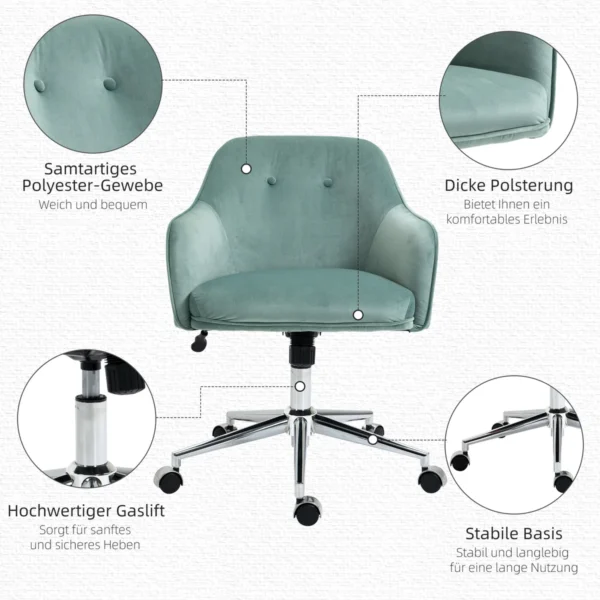 Padarykite savo darbo valandas labiau atsipalaidavę nei bet kada anksčiau su šia sukama Vinsetto kėde. Šioje stilingoje biuro kėdėje rasite viską, ko reikia biuro kėdėje, įskaitant siūbavimo funkciją, 360° pasukimą ir reguliuojamą sėdynę. Kubilo formos kėdė su aukštais šonais ir atlošais puikiai palaiko jūsų kūną. Storas paminkštinimas ir minkštas aksominio prisilietimo poliesterio audinys užtikrina optimalų komfortą.
