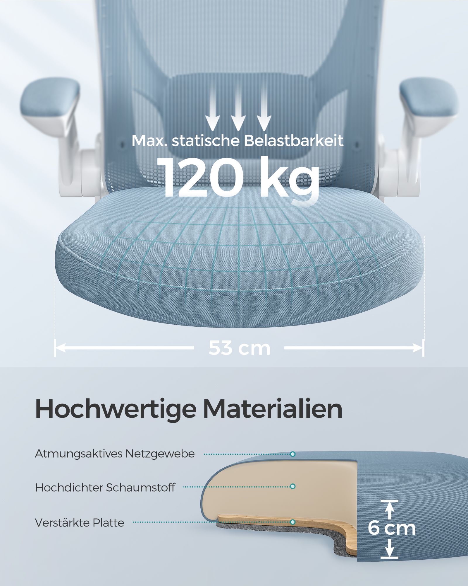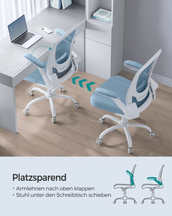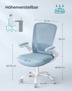 Ši elegantiška ir ergonomiška biuro kėdė yra puikus pasirinkimas tiems, kurie vertina komfortą ir stilių savo darbo aplinkoje. Su šviesiai mėlynos ir baltos spalvos deriniu, ši kėdė suteiks jūsų biurui modernumo ir gaivumo pojūtį.
