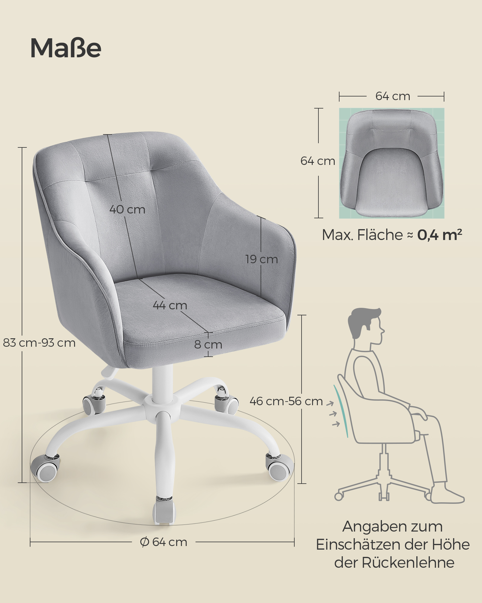 - Dydis: 64 x 64 x (83-93) cm (D x P x A)