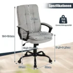 Biuro kėdė 65x62x114 cm pilkos ir juodos spalvos suteikia patogumą bei ergonomišką atramą darbo ar mokymosi metu. Reguliuojamas kėdės aukštis ir porankių palaikymas užtikrina gerą laikyseną bei sumažina nugaros skausmus ilgai sėdint. Ši biuro kėdė yra tinkama naudoti namų biure ar kompiuterių kambaryje.