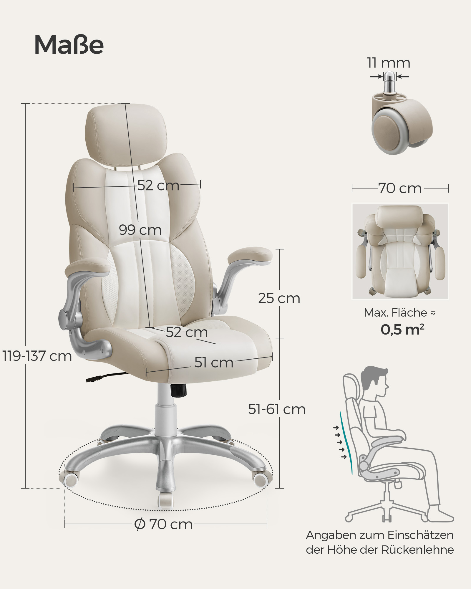 Biuro kėdė 70x70x137cm, Kreminės/Baltos Spalvos