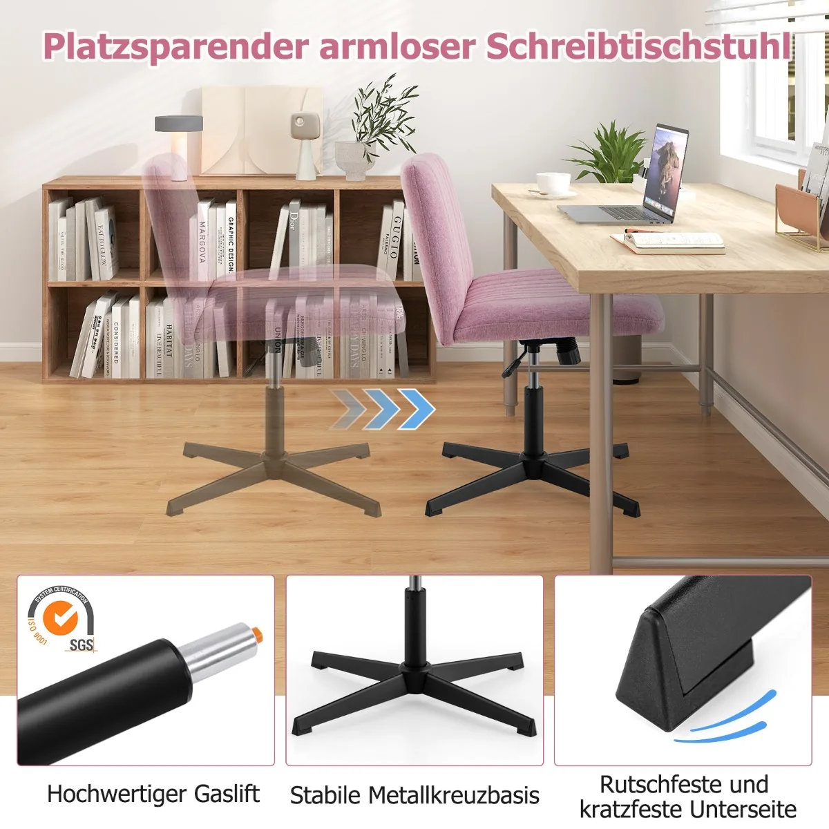 Biuro kėdė 71x66x91,5 cm rožinės ir juodos spalvos puikiai tinka namų ar biuro darbo vietai. Pasukama kėdė su plačia paminkštinta sėdyne ir reguliuojamu aukščiu užtikrina ilgalaikį komfortą ir patogumą.