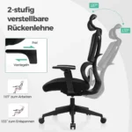 - Ergonomiškas atlošas su dviem padėtimis – 107° darbo režimui ir 133° poilsiui.