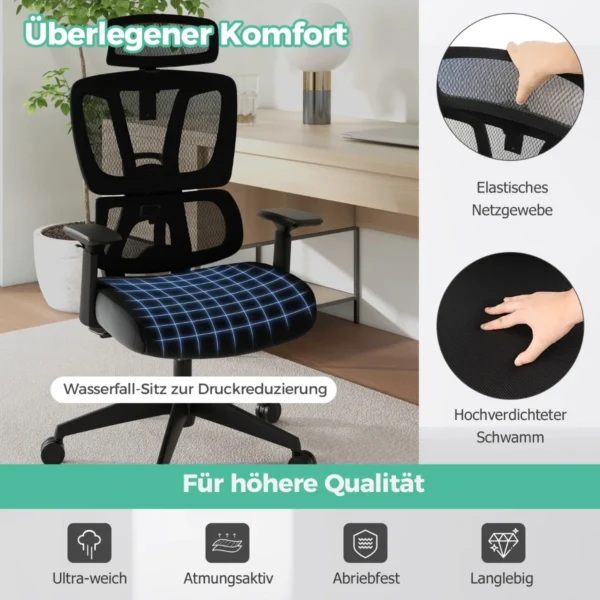 Biuro kėdė 72x72x126,5 cm, juodos spalvos, skirta užtikrinti komfortą ir ergonomiškumą ilgoms darbo valandoms. Reguliuojamas aukštis ir 360° pasukama sėdynė leidžia patogiai dirbti bei bendrauti darbe. Kėdės konstrukcija ir medžiagos prisideda prie patvarumo bei tinkamo oro pralaidumo.