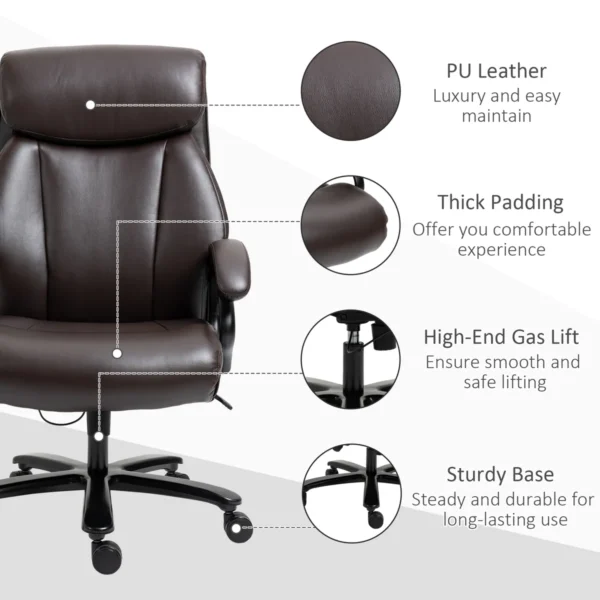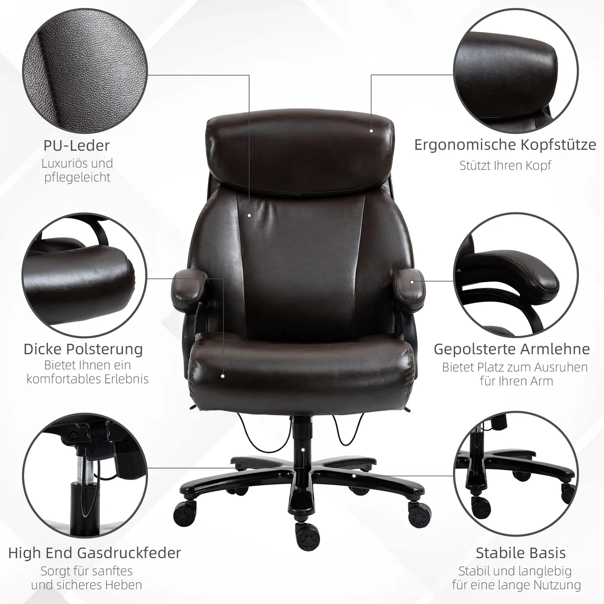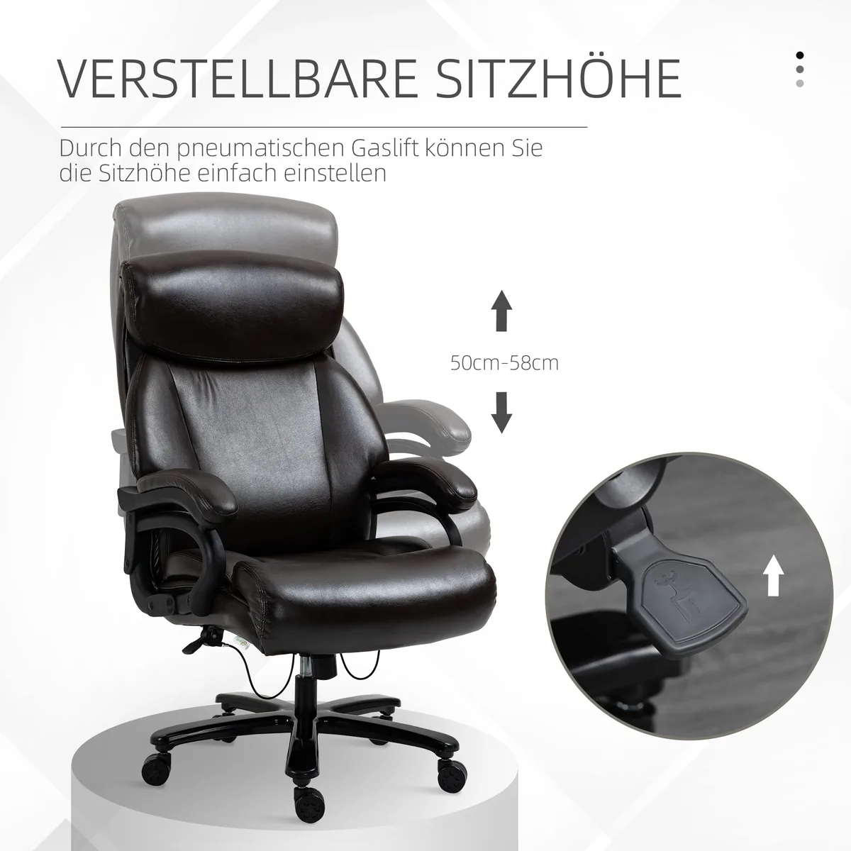Ši vadovo kėdė iš HOMCOM siūlo ypač aukštą sėdėjimo komforto lygį. Nugara ir porankiai gausiai paminkštinti. Sėdynė yra reguliuojamo aukščio ir gali būti pritaikyta pagal individualius poreikius. Siūbavimo funkcija užtikrina patogias pertraukas.