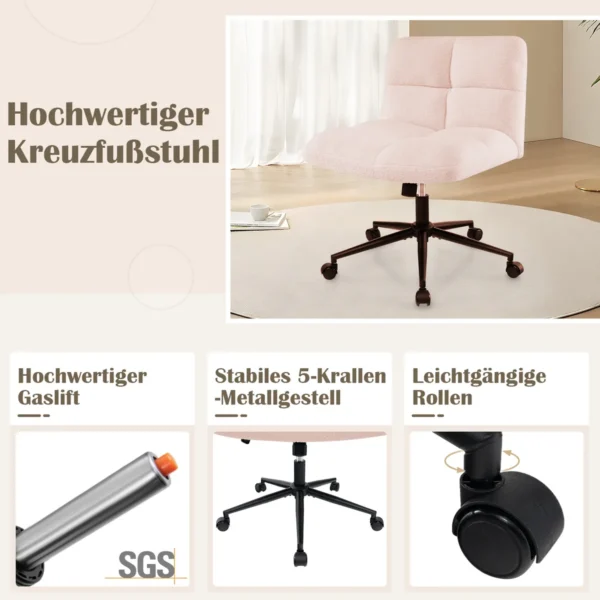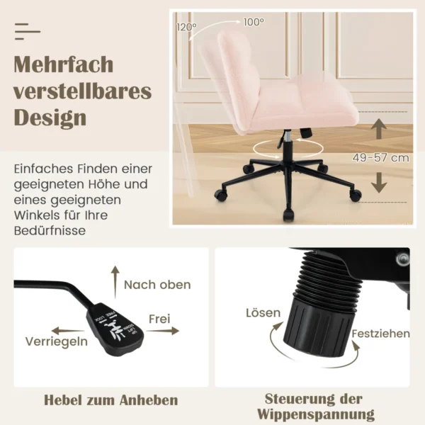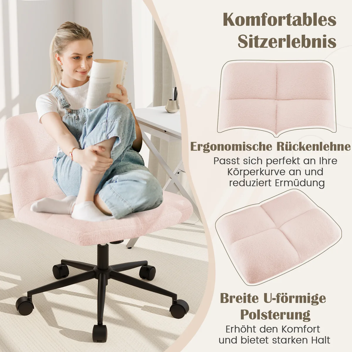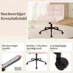 Biuro kėdė 73x69x87 cm rožinės ir juodos spalvos puikiai tinka namų ar biuro darbo vietai. Patogi sėdynė su aukščio reguliavimu ir siūbavimo funkcija užtikrina ergonomišką sėdėjimą ilgesniam laikui. Metalinis penkių šakų pagrindas ir ratukai leidžia laisvai judėti darbo patalpose.
