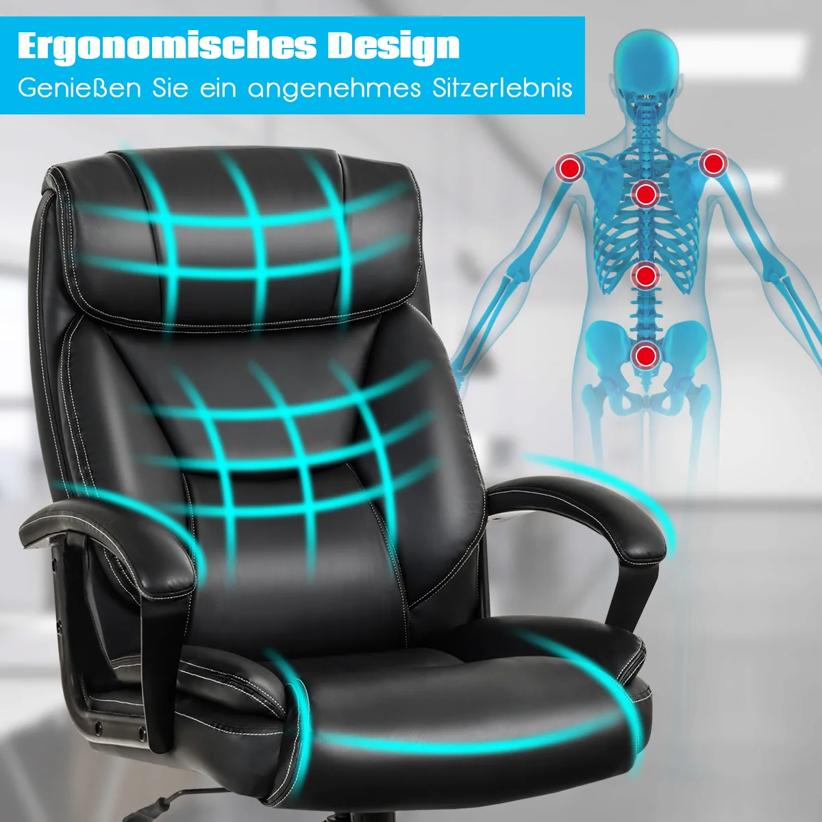 Biuro kėdė 74x53x127 cm, juodos spalvos, puikiai tinka tiek biurui, tiek namams. Ergonomiškas dizainas užtikrina patogų ir komfortišką sėdėjimą ilgą laiką. Kėdė turi reguliuojamą sėdynės aukštį ir siūbavimo funkciją, leidžiančią prisitaikyti prie individualių poreikių.