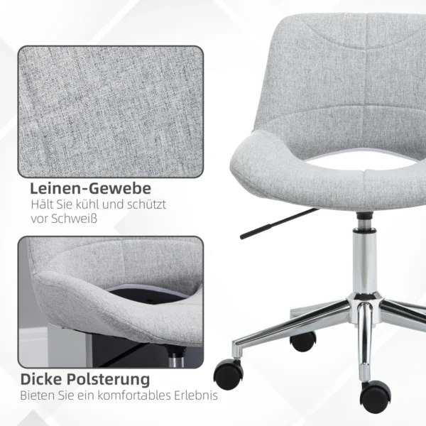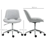HOMCOM pasukama kėdė yra universali ir dėl klasikinio minimalistinio dizaino tinka bet kokiai aplinkai. Dėl lenktos formos ir erdvaus, patogaus paminkštinimo jis užtikrina aukštą sėdėjimo komforto lygį, taip pat maksimalią judėjimo laisvę dėl ratų ir pasukimo sistemos. Dėl nesenstančio dizaino ji yra ypač universali: šią kėdę galite naudoti kaip biuro kėdę darbui, kaip stalo kėdę namų biure arba kaip patogią žaidimų kėdę.