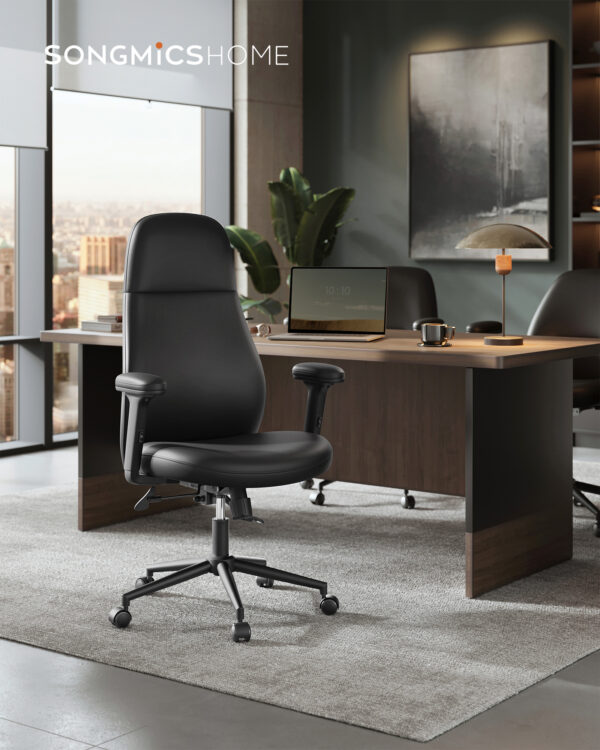 Ši biuro kėdė, juodos spalvos, yra puikus pasirinkimas jūsų darbo vietai. Jos elegantiška rašalo juoda spalva suteikia modernumo ir stiliaus jūsų interjerui.