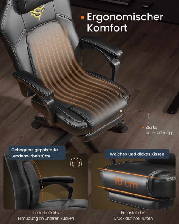 Pagaminta iš aukštos kokybės plieno ir PU sintetinės odos (poliuretano), ši kėdė yra tvirta ir patogi. Kėdės matmenys yra 70 x 70 x (119-129) cm (D x P x A), o sėdynės aukštis reguliuojamas nuo 47 iki 57 cm.