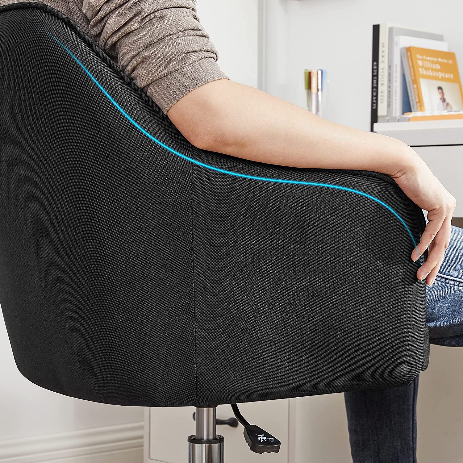 Skirtingo ūgio žmonėms reikia skirtingo aukščio kėdžių, kad būtų užtikrintas optimalus sėdėjimo komfortas. Dėl šios priežasties ši biuro kėdė OBG019B01 yra reguliuojamo aukščio, todėl tinka tiek dideliems, tiek mažiems biuro herojams. Gerai paminkštintas atlošas ir porankiai idealiai paskirsto spaudimą ant kūno, užtikrinant patogumą visą darbo dieną. Kvėpuojantis paviršius, pagamintas iš juodo lino imitacijos, suteikia malonumą sėdėti ant šios kėdės.