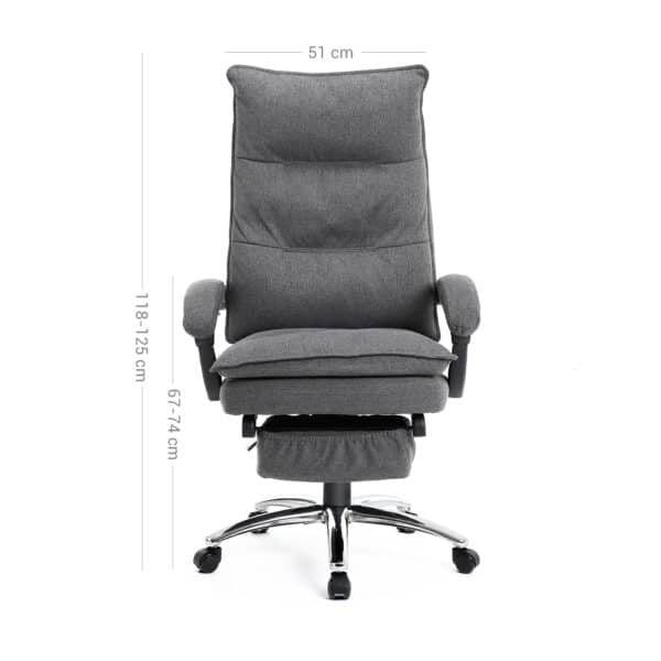 Biuro kėdė OBG78GY, pilkos spalvos, pagaminta iš odai nekenksmingo lino ir didelio tankio putplasčio, užtikrina aukštą komforto lygį net ir ilgai sėdint. Kėdės užvalkalas yra aukštos kokybės, išsiskiria išskirtiniu meistriškumu, yra atsparus spalvoms ir nesulimpa.
