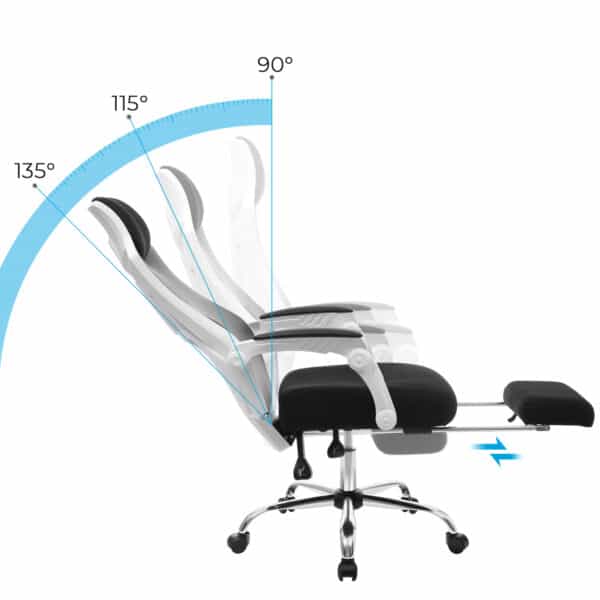 - Pakreipimo funkcija ir ištraukiama paminkštinta pėdų atrama leidžia patogiai atsipalaiduoti keletą minučių ir grįžti į darbą.