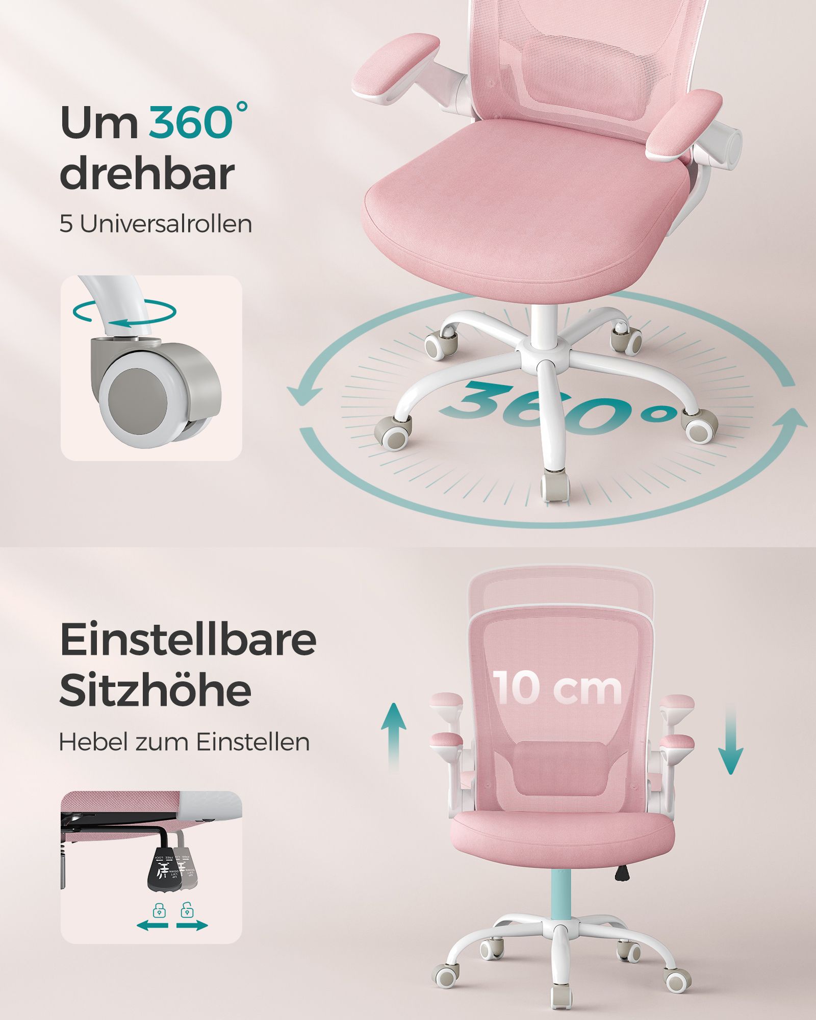 Ši biuro kėdė pastelinės rožinės spalvos yra puikus pasirinkimas jūsų darbo vietai. Jos modernus dizainas ir spalvų derinys suteikia elegancijos ir stiliaus jūsų interjerui.
