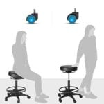 Kietas sėdėjimas liko praeityje: šiuolaikiniuose biuruose dabar yra taburetės ant ratukų, kurios leidžia aktyviai dirbti. Jauskitės patogiai ant gerai paminkštintos šios darbo kėdės sėdynės ir toliau judėkite. Stabilių ratukų dėka kėdę galima pasukti 360°, reguliuoti aukštį nuo 59,5 iki 81 cm, pakreipti į visas puses ir, žinoma, perkelti per kambarį.