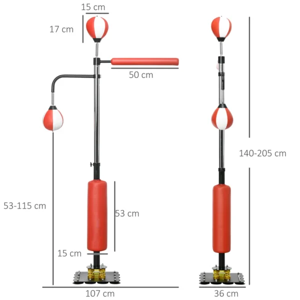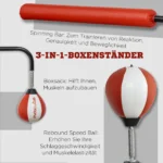 Boksas siūlo veiksmingą ir tvarią viso kūno treniruotę, kuri gali padėti sustiprinti kojas, nugarą, krūtinę ir pečius. Štai kodėl sukūrėme šį patogų bokso stovą, kad galėtumėte treniruoti savo bendrą formą, greitį, rankų ir akių koordinaciją bei ištvermę neišeidami iš namų. Naudodami du greito greičio kamuoliukus, laisvai besisukantį bokso strypą ir praktišką kick padą, galite palaikyti formą ir optimaliai pasiruošti ringui.