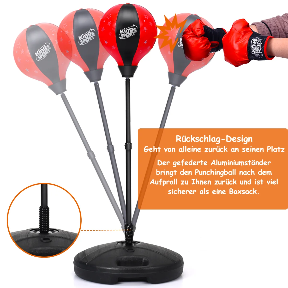 - Bokso kriaušė vaikams su reguliuojamu aukščiu nuo 81 cm iki 123 cm.