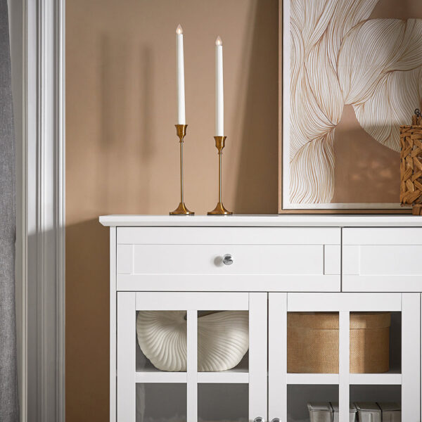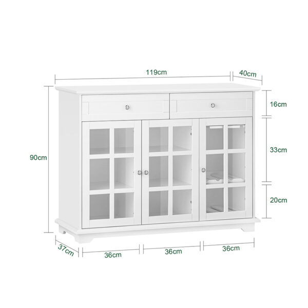 Pagamintas iš aukštos kokybės medžio drožlių plokštės (MDF) ir MDF plokščių su vandeniui atspariu paviršiumi, šis laisvai stovintis bufetas yra ilgaamžis ir patikimas.