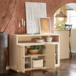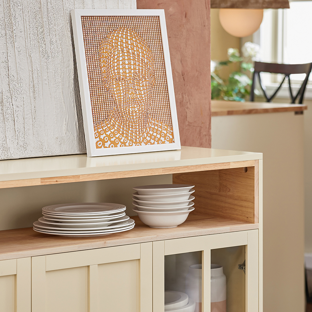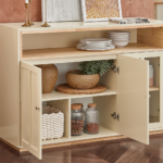 Bufeto stiklinės durys užtikrina, kad jūsų vertingiausi daiktai išliks be dulkių ir tuo pačiu metu bus puikiai matomi.