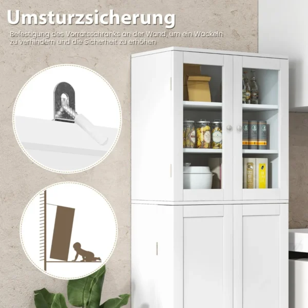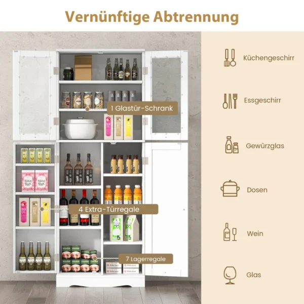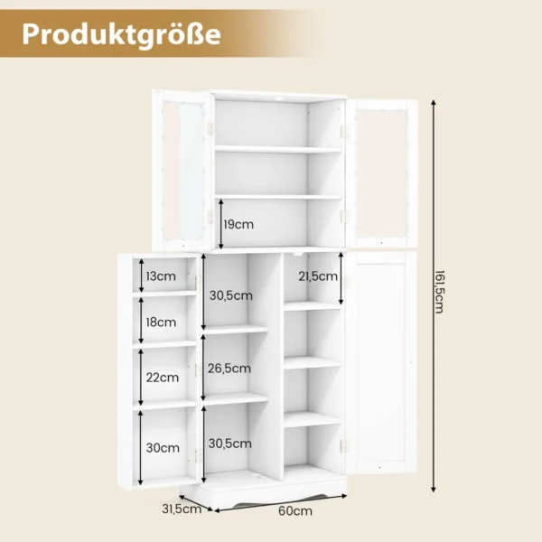 Bufetas 60×31,5×161,5 cm baltos spalvos yra praktiškas baldų sprendimas daiktų sandėliavimui namuose. Ši spintelė tinka virtuvei, valgomajam ar svetainei, kur reikalinga papildoma vieta indams, prieskoniams ar kitoms maisto prekėms laikyti.