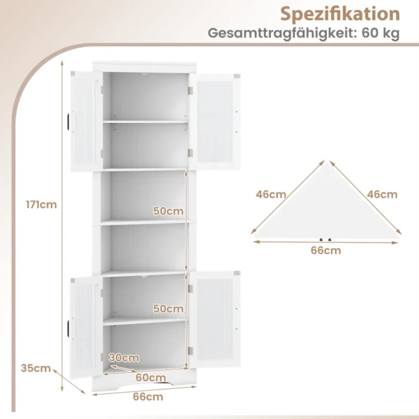 Bufetas 66x35x171cm baltos spalvos puikiai tinka efektyviam kampinės erdvės išnaudojimui jūsų namuose. Ši kampinė spintelė siūlo įvairias saugojimo galimybes ir dera prie skirtingų interjero stilių. Jos konstrukcija užtikrina stabilumą ir praktiškumą kasdieniam naudojimui.