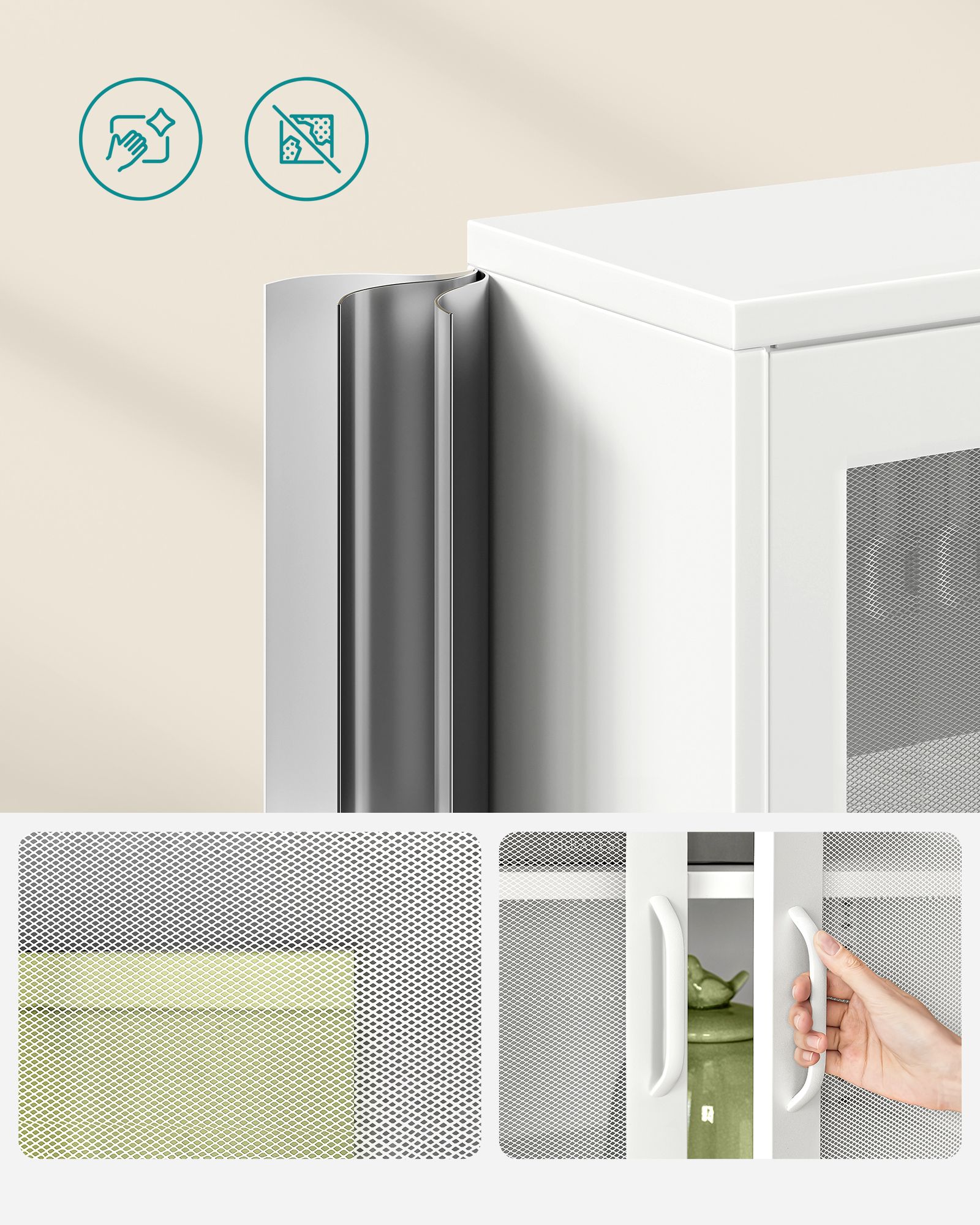 - Lengva priežiūra: Dėl lygaus paviršiaus bufetą lengva valyti ir prižiūrėti.