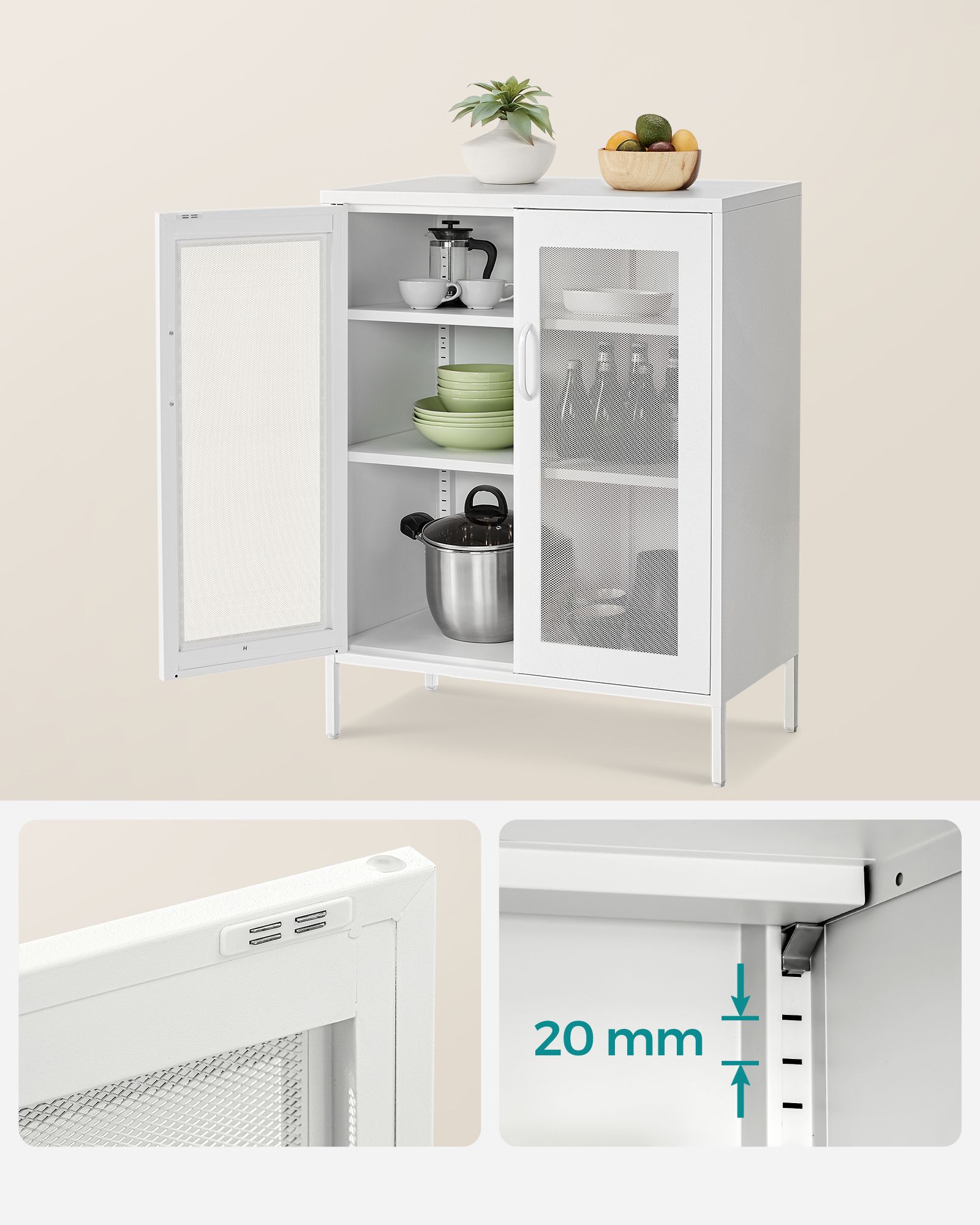 - Estetika: Baltos spalvos bufetas suteikia šviesos ir erdvumo pojūtį jūsų namams.
