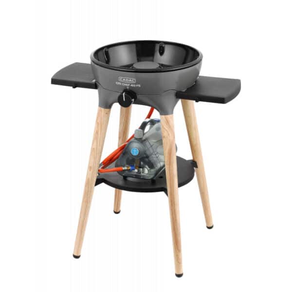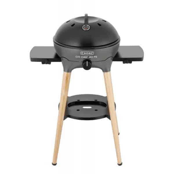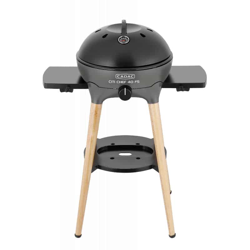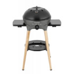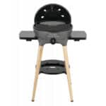 Madingos dujinės kepsninės su medinėmis kojelėmis ( 40cm) Nuimami šoniniai stalai su pakabomis Automatinis uždegimas Lengva valyti dėl nuimamo riebalų padėklo ir GreenGrill keramika dengtų grilio grotelių Dangtį galima užkabinti Šone, kad apsaugotų nuo vėjo ir purslų Apima puodų lentyną, grilio groteles ir dangtelį su termometru 5 metų garantija