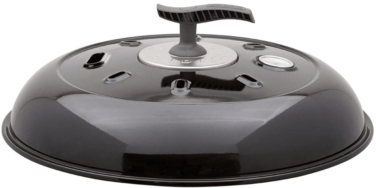 Porcelianinis emaliuotas dangtelis su vėsia rankena. Įrengtas ventiliacijos angas, nerūdijančio plieno šilumos defliatorius, termometras ir ugniai atspari rankena. skersmuo 48 cm Tinka „Citi Chef“ ir „Carri Chef 2“ kepsninėms