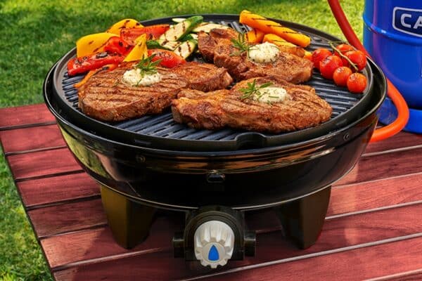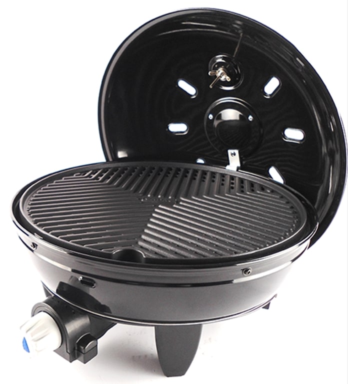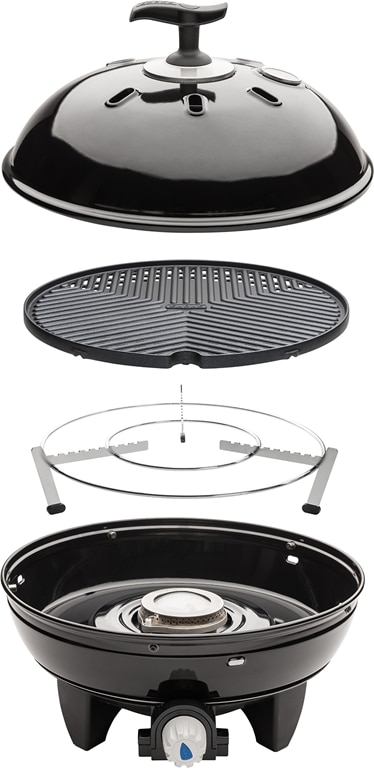 Šis patvarus, kompaktiškas ir lengvai nešiojamas dujinis grilis idealiai tinka kepti mėsą, žuvį ir daržoves. Ši dujinių grilių linija pasižymi kompaktišku ir lengvu dizainu. Griliuose sumontuoti modernizuoti didelio galingumo degikliai su tiksliu liepsnos valdymu. Standartinio pjezoelektrinio uždegiklio dėka „Grillo Chef 2“ paleidimas yra vaikiškas žaidimas ir užtrunka akimirką. Sunkios ir patvarios grotelės, padengtos keramine danga, sukonstruotos taip, kad greitai įkaistų, ilgiau išlaikytų temperatūrą ir tolygiai paskirstytų šilumą. Komplekte yra tvirtas puodo stovas. Taigi galite lengvai užvirti vandenį ar ruošti valgį. Kepsninė lengvai sulankstoma ir užima mažai vietos pridedamame maišelyje. Privalumai Virimo paviršius: grotelių skersmuo 38cm Bendra šildymo galia: 3kW Bendras vidutinis dujų suvartojimas: 218g/h Vidutinis darbinis slėgis: 28-37mBar Nuimamos aliuminio kojelės Automatinis pjezoelektrinis uždegiklis Tikslus liepsnos reguliavimas Nuimamas bakas riebalams nuvarvėti, su užpildymo peržiūra. patvarus krepšys griliui laikyti Matmenys: 70,0 (A) x 63,0 x 63,0 cm Svoris: 6kg Matmenys Aukštis 71 cm Plotis 65 cm Gylis 65 cm Techniniai duomenys Apytikslis svoris 7,5 kg Bendra šildymo galia 3 kW Bendras vidutinis dujų suvartojimas 218 g/val. vidutinis slėgis Darbinė temperatūra 28-37 mBar Prekės numeris5650-20-EU kodas EAN6001773112659 Degiklio sistema Automatinis pjezo uždegimas Tikslus liepsnos valdymas Kepimo paviršius Tinklelio skersmuo – 38 cm