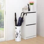 „Songmics“ siūlo stilingus prieškambario baldus, kurie puikiai papildys jūsų spintos baldus. Cilindrinis stovas skėčiams LUC10W, baltas, pagamintas iš metalo, su drugelio motyvu, taps akį traukiančiu akcentu jūsų koridoriuje ar įėjimo zonoje.