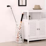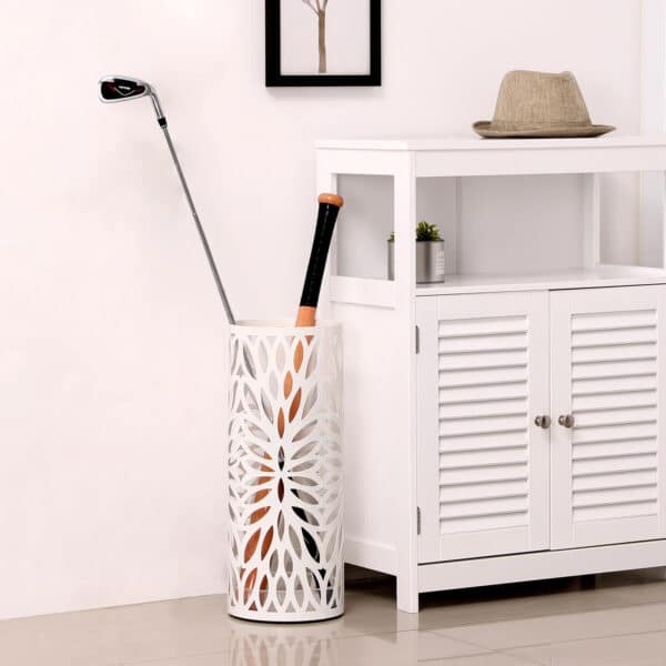 Šis geležinis skėčio stovas yra funkcionalus ir stilingas. Jis ne tik suteikia galimybę laikyti skėčius, bet ir papuoš jūsų erdvę, tikrai patraukdamas akį prieškambaryje ar įėjime.