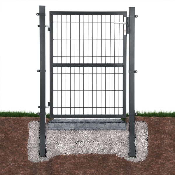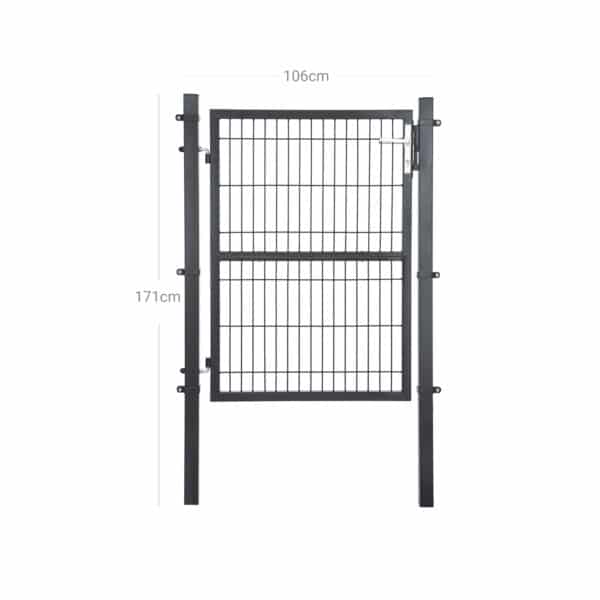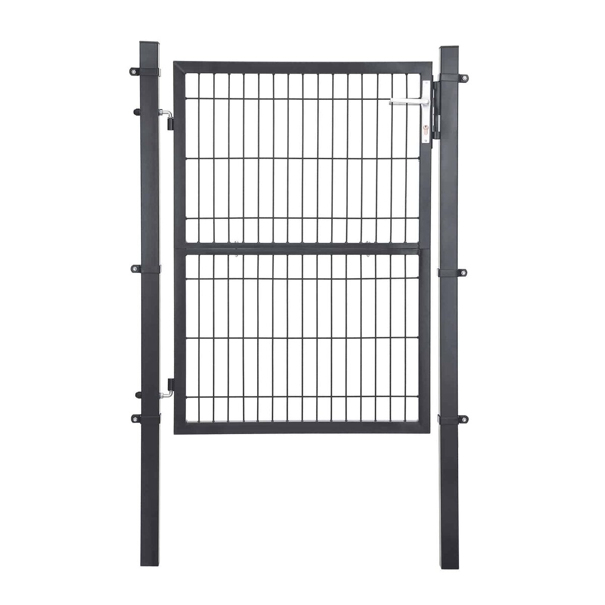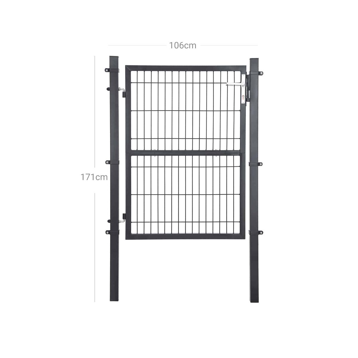 Viskas įskaičiuota, taip pat kokybė! Komplektą sudaro: 1 tvirtos grotelių durys, 2 tvirti stulpeliai iš milteliniu būdu dengtos cinkuotos geležies, 2 vyriai, 1 kokybiška spyna su 3 raktais, 1 rankena iš nerūdijančio aliuminio ir 6 tvirtinimo spaustukai. Visa tai užtikrina šių sodo vartų ilgaamžiškumą ir atsparumą korozijai.