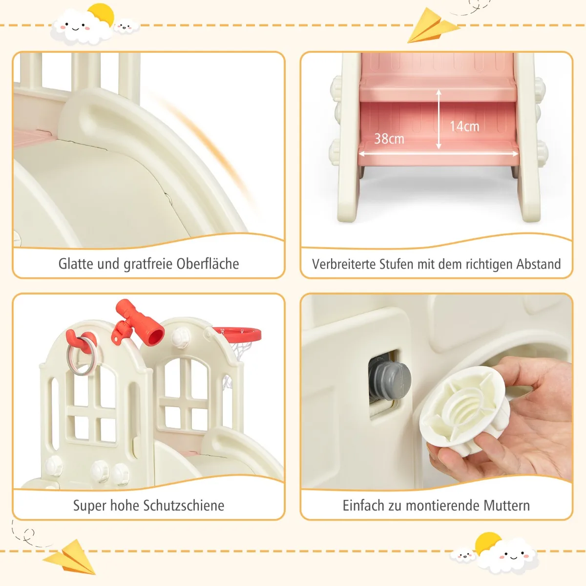 - Daugiafunkcinė čiuožykla su ilga ir plačia čiuožykla, laipiojimo sienele, tuneliu, krepšinio lanku, teleskopu ir žiedo mėtymo elementais.