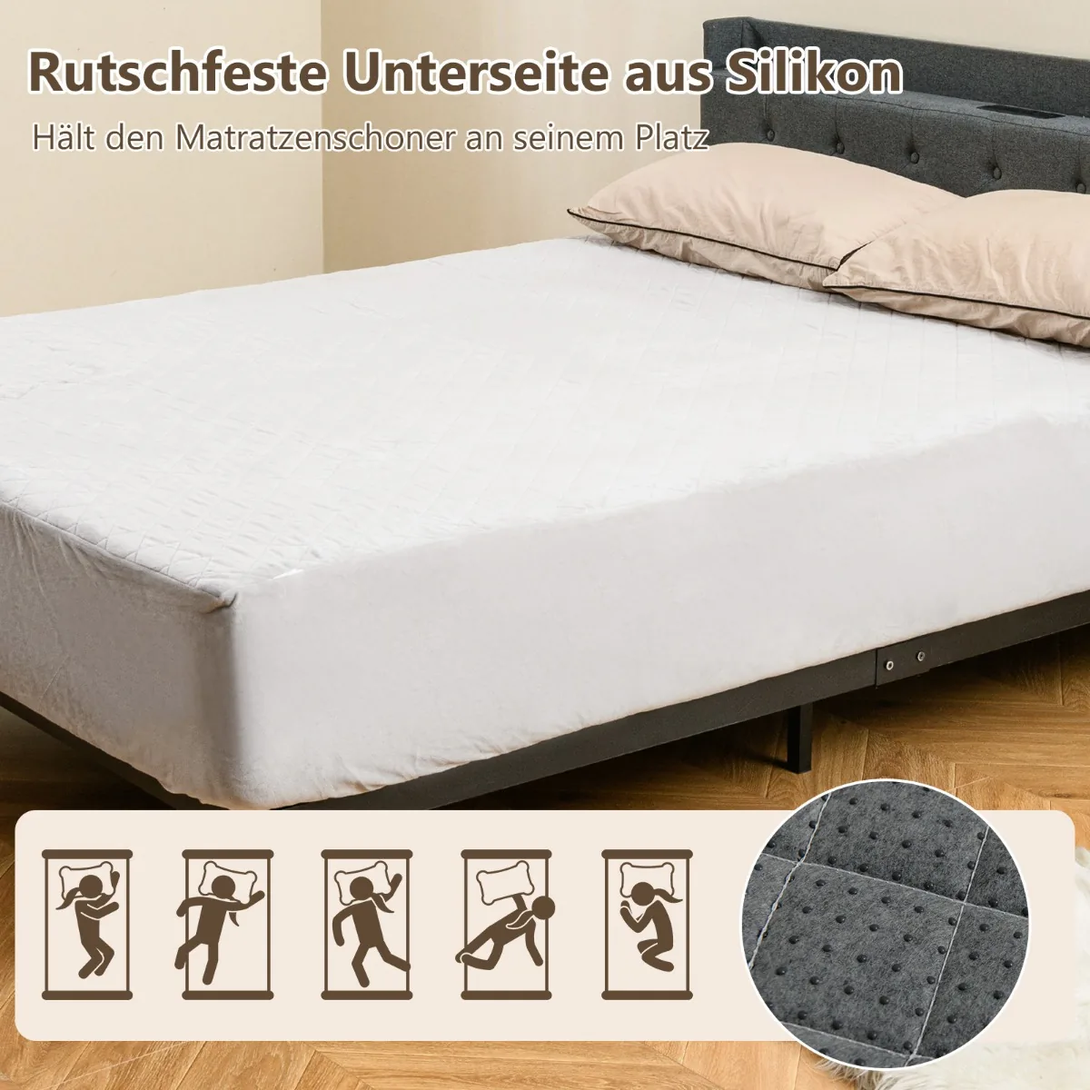 Čiužinio užvalkalas 90x200cm pilkos spalvos užtikrina patogų ir orui pralaidų miego paviršių. Ši čiužinio apsauga sukurta specialiai 40 cm storio čiužiniams, apsaugo nuo dulkių, prakaito ir nešvarumų bei palaiko švarą ir higieną jūsų miegamajame.