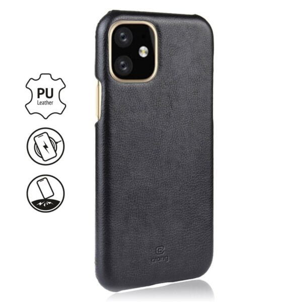 „Crong Essential“ dėklas – PU odinis dėklas, skirtas „iPhone 11“ (juodas)