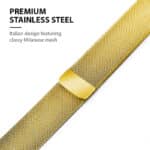 „Milano Steel“ siūlo aptakų ir elegantišką stilių, kurį vertina visi aukščiausios klasės „Apple Watch“ vartotojai. Lygus nerūdijančio plieno tinklelis nesulaiko drabužių, todėl puikiai tinka tiek prie oficialių, tiek prie kasdienių drabužių. O dėl savo magnetinės sagties labai patogu reguliuoti jos ilgį, kad puikiai priglustų.