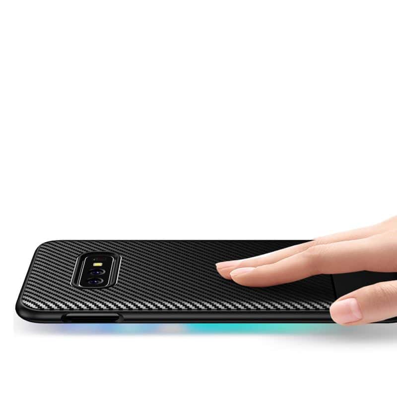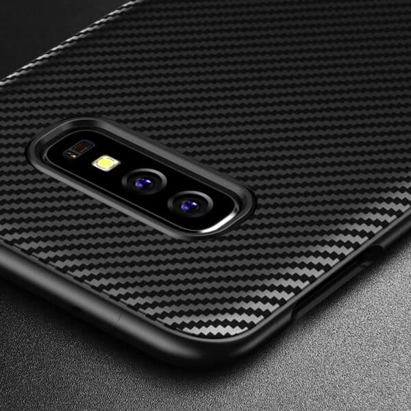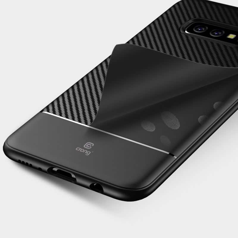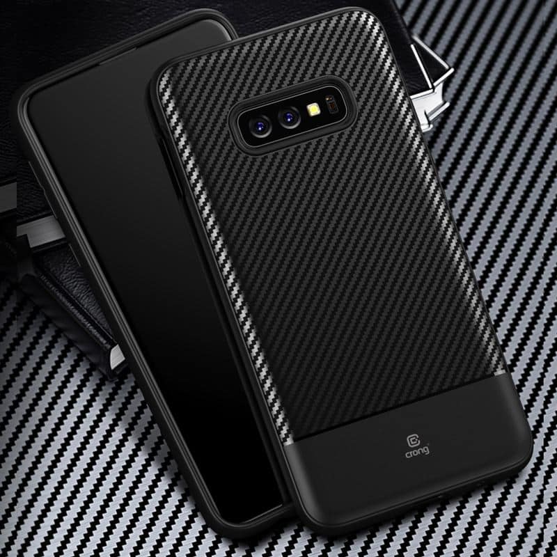 Crong Prestige Carbon Cover – apsauginis dėklas, skirtas Samsung Galaxy S10e (juodas)